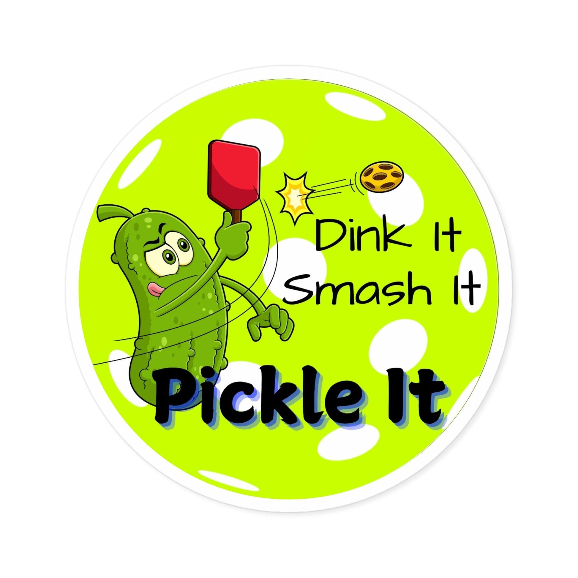 "Dink It - Smash It - Pickle It" Round Pickleball Stickers - Durable Vinyl for Indoor & Outdoor Use - 5 Sizes Available