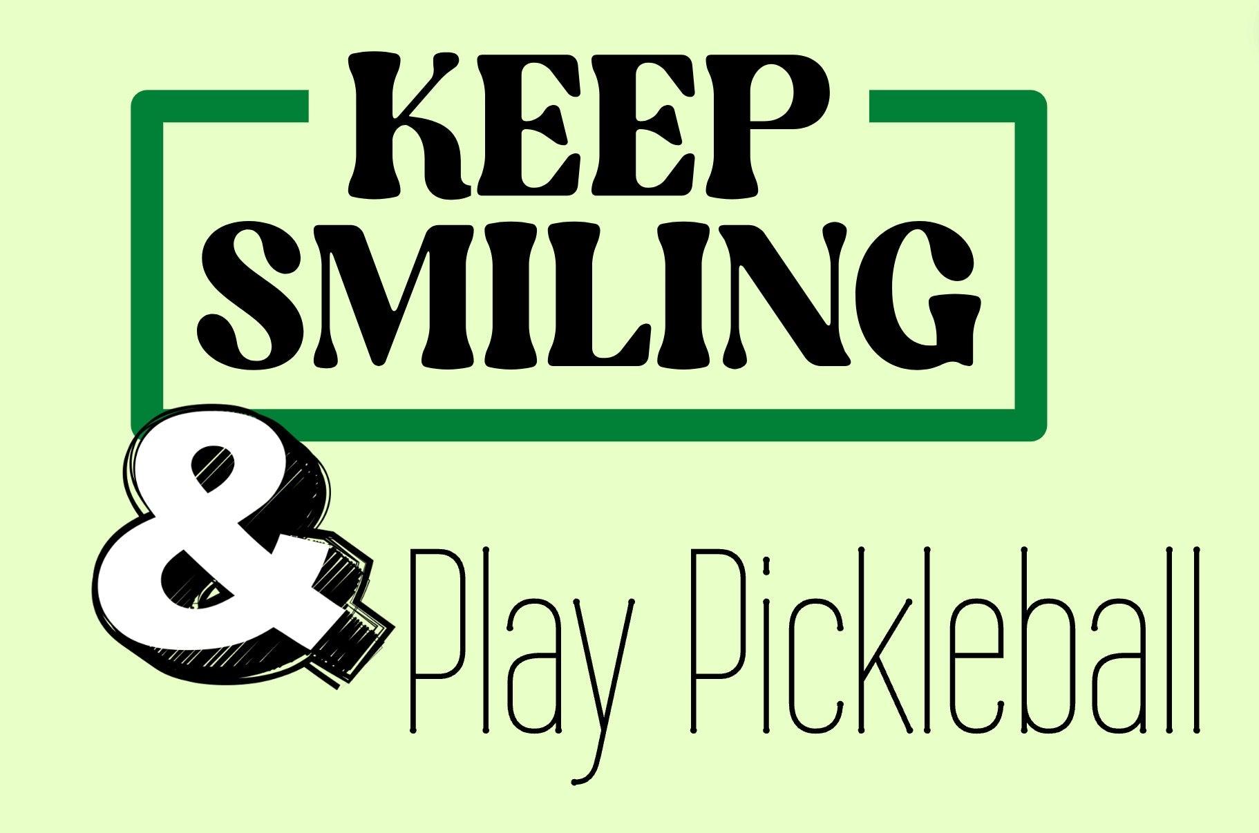 "Keep Smiling & Play Pickleball" Pickleball Kiss-Cut Decal | Durable Vinyl Decal for Bottles, Laptops, Cars | Available in 4 Sizes | Indoor/Outdoor Use